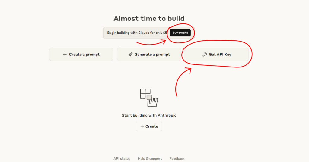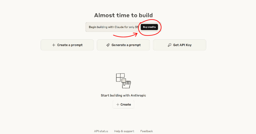 1. In the main Console dashboard, you will see the option “Begin building with Claude for only \$5”