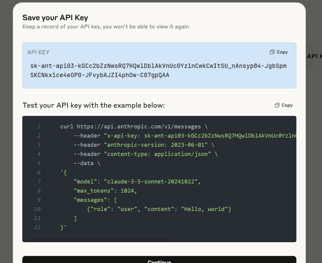 1. The API key will be displayed in the blue field