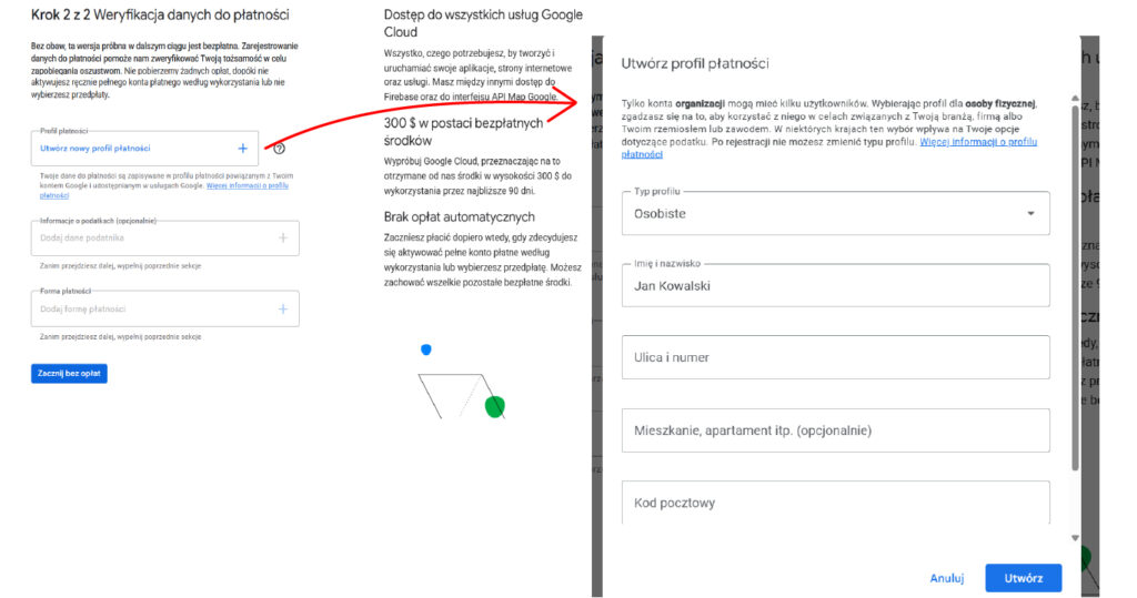1. Kliknij „Utwórz nowy profil płatności”
