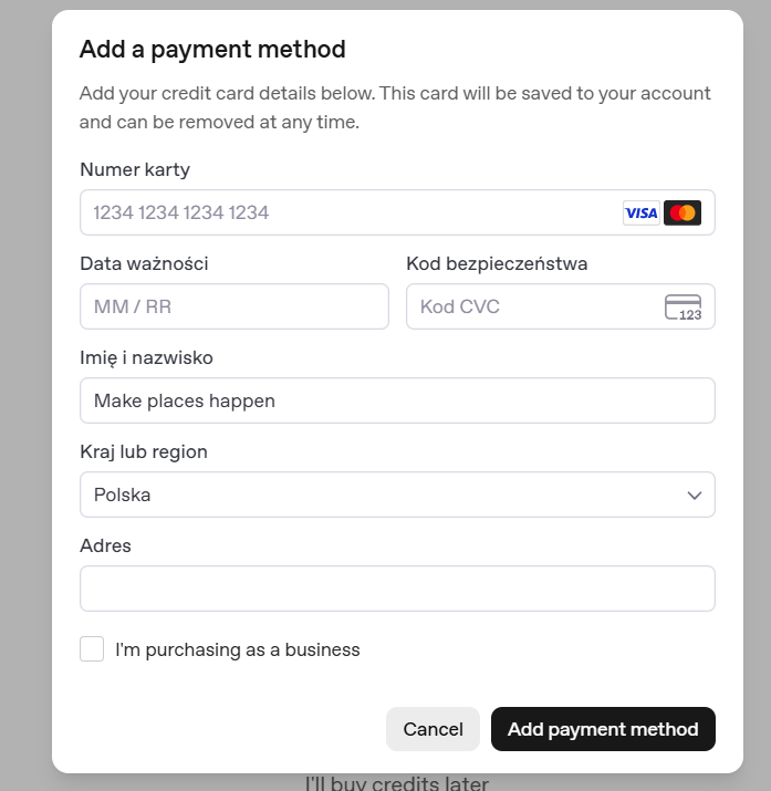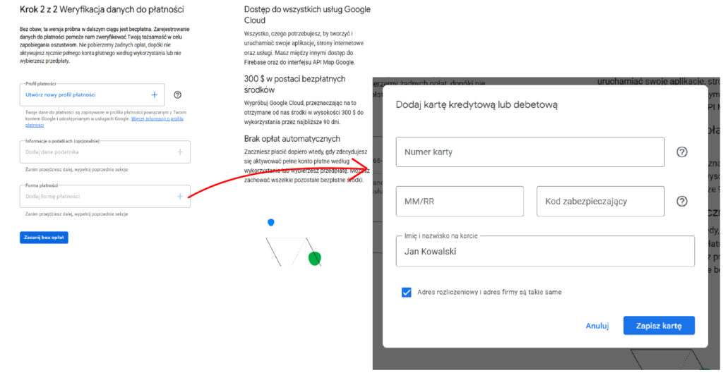 1. Kliknij „Dodaj formę płatności” i podaj dane karty