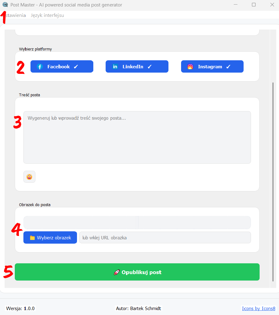 – the application will publish the appropriate content on each platform. If there are no separate markings in the content, the same content will be published on all selected platforms.
