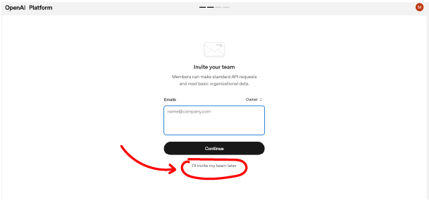 1. On the next screen, you can invite organization members to join. You can skip this step by clicking I'll invite my team later