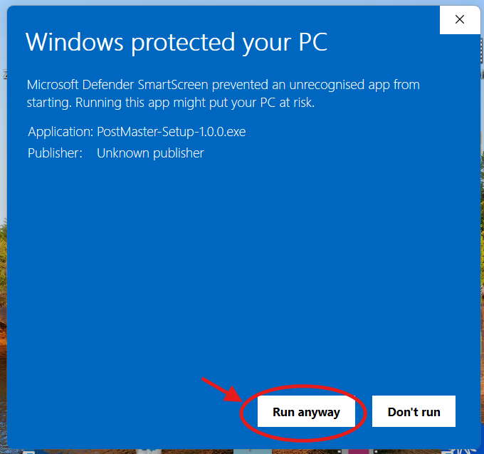Click the “More info” button, then select “Run anyway,” and continue with the installation process.